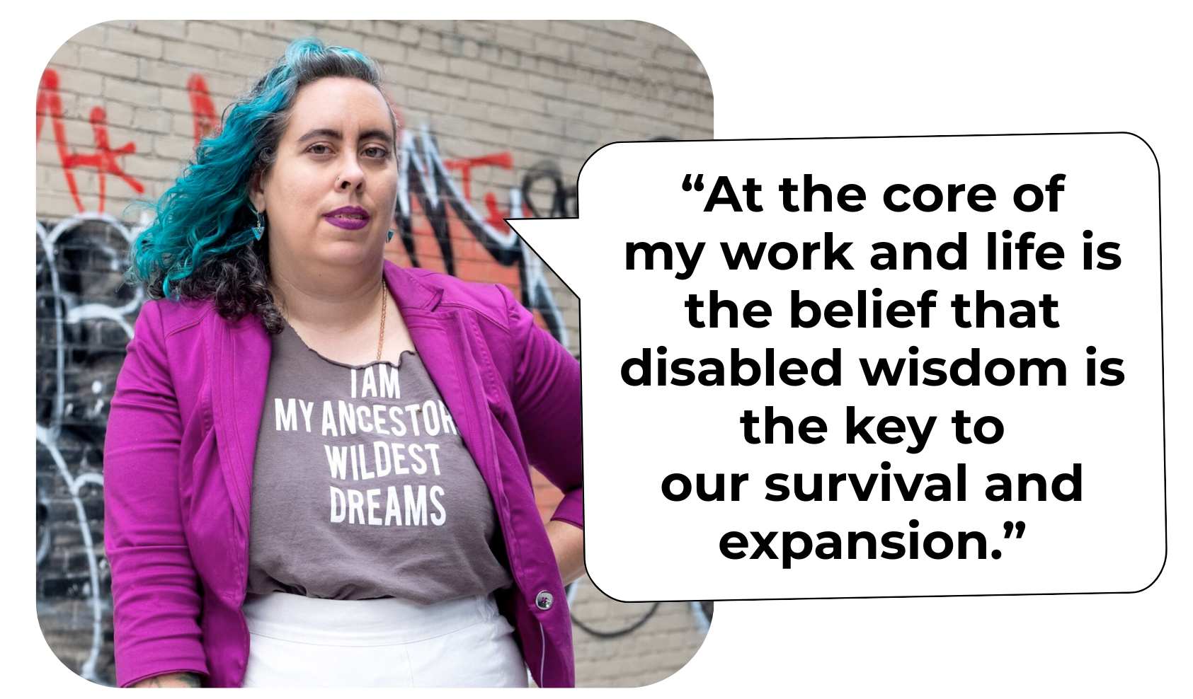 How do we move from narratives that pit disability as aberrance, brokenness, and nothing but suffering — and even beyond the baseline need for full access and acceptance — to reach towards a future where disabled lives are as cherished as any other, where disabled wisdom is highly prized and disabled culture adopted with gratitude by the broader society?