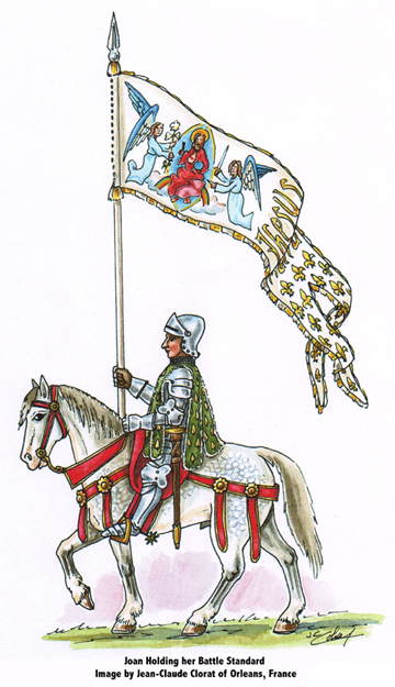 Joan of Arc with her standard, which depicted Christ seated on a rainbow
